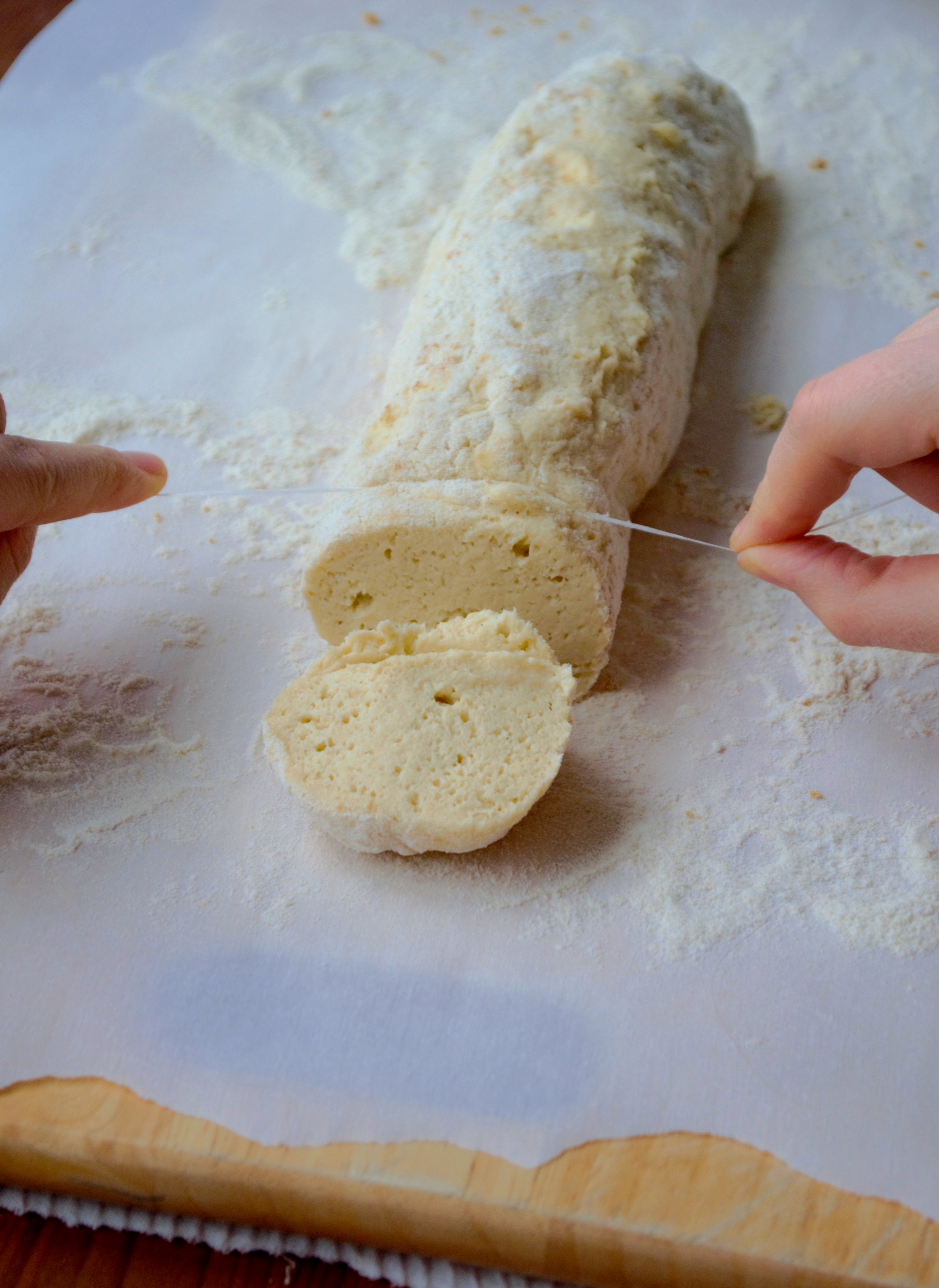 Use floss to cut through the dough