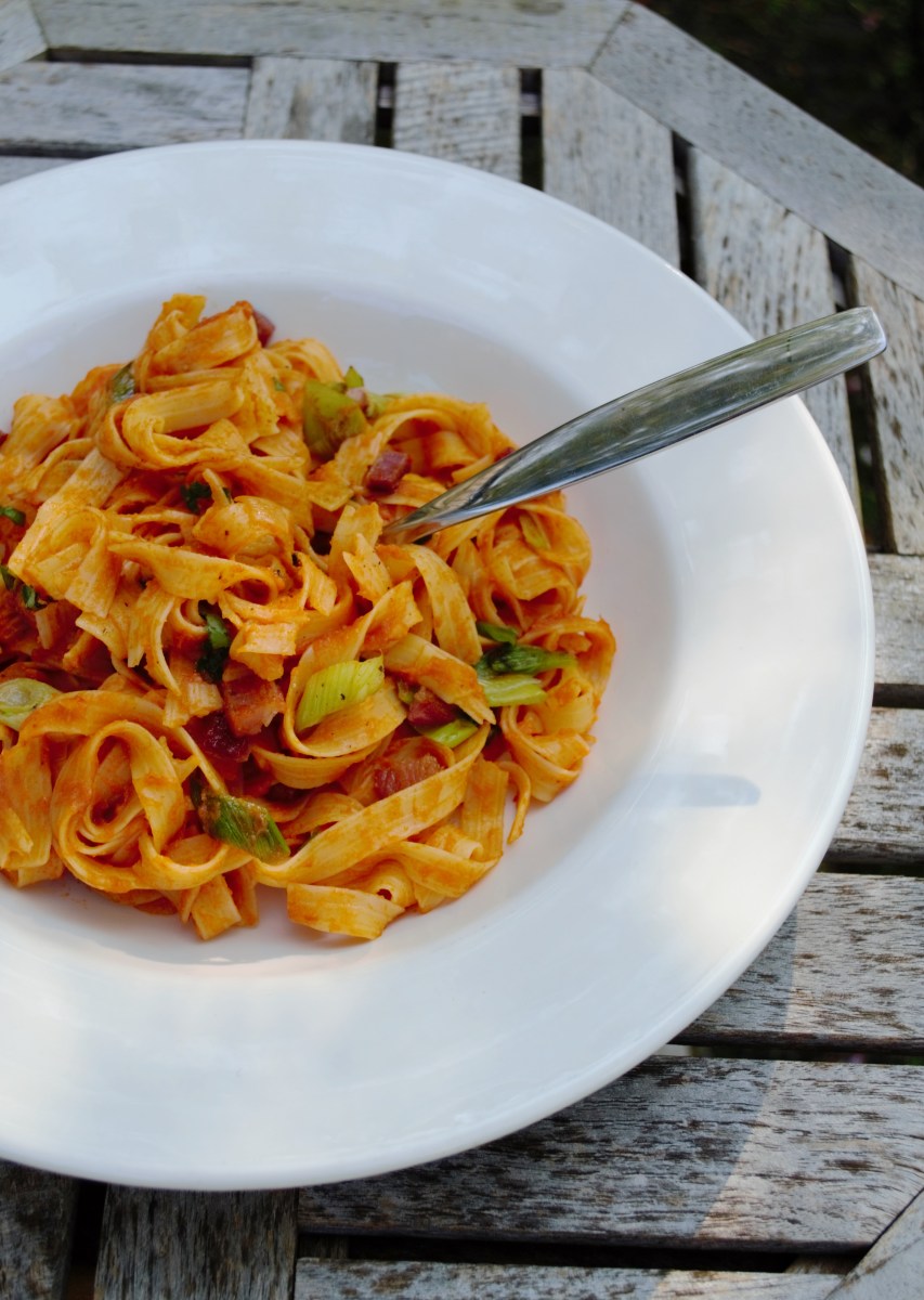 Published May 29, 2014 at 3072 × 4323 in Fettuccine alla Vodka ~ with Crispy Pancetta & Spring Onions (Gluten & Dairy-Free!)